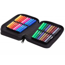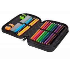 Ο πρώτος θάλαμος περιέχει ένα μολύβι, ένα στυλό, έναν χάρακα 15 cm, μια ξύστρα, μια γόμα και 12 ξυλομπογιές. Ο δεύτερος θάλαμος περιέχει 18 χρωματιστούς μαρκαδόρους, όλα της Colorino.