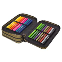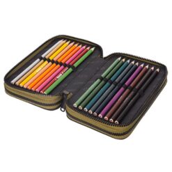 Ο πρώτος θάλαμος περιέχει δύο μολύβια, δύο στυλό, έναν χάρακα 15 cm, γνώμονα και μοιρογνωμόνιο, μια ξύστρα, μια γόμα και ένα ψαλίδι. Ο δεύτερος θάλαμος περιέχει 18 ξυλομπογιές, και ο τρίτος θάμαλος περιέχει 18 χρωματιστούς μαρκαδόρους, όλα της Colorino.