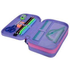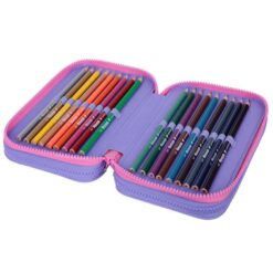 Ο πρώτος θάλαμος περιέχει δύο μολύβια, δύο στυλό, έναν χάρακα 15 cm, γνώμονα και μοιρογνωμόνιο, μια ξύστρα, μια γόμα και ένα ψαλίδι. Ο δεύτερος θάλαμος περιέχει 18 ξυλομπογιές, και ο τρίτος θάμαλος περιέχει 18 χρωματιστούς μαρκαδόρους, όλα της Colorino.