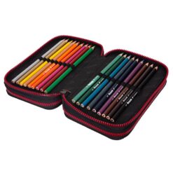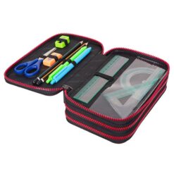 Ο πρώτος θάλαμος περιέχει δύο μολύβια, δύο στυλό, έναν χάρακα 15 cm, γνώμονα και μοιρογνωμόνιο, μια ξύστρα, μια γόμα και ένα ψαλίδι. Ο δεύτερος θάλαμος περιέχει 18 ξυλομπογιές, και ο τρίτος θάμαλος περιέχει 18 χρωματιστούς μαρκαδόρους, όλα της Colorino.